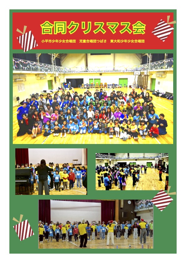 12月21日(日)東大和市立第二小学校体育館で3つの合唱団で楽しく歌ったり、ゲームをしたりしました。
